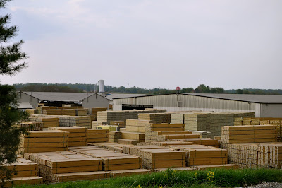 For the past year or so my route to work has changed. I take what is supposed to be a ‘back road’ but is really travelled by many, many people each day. This route includes passing by Universal Forest Products which is a plant for treating lumber. When the economy took a turn for the worst the grounds around this building were pretty much empty for a long time. There was little activity and just a handful of cars that appeared to be the ‘workers’. Just recently the number of trucks going in and out has increased and many mornings I am actually held up while they make their way into the lumber yard.