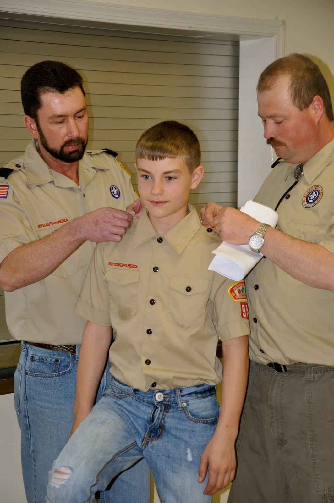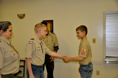 After church we were invited to Pack 95’s Annual Blue & Gold Banquet. Chase moved up into Boy Scouts last year however had never officially ‘crossed over’. He was included in their ceremony and crossed over with Brian. This means that he finalized all the cub scout duties and completed all the requirements. Before he steps over the bridge, the blue shoulder loops are removed. Once he crosses the bridge, he is greeted by the Troop at which time his new green loops are added.