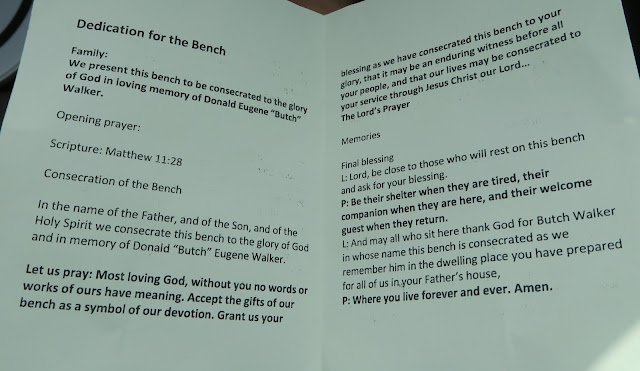 On Sunday Pastor Joanna ‘blessed his bench’. It was a perfect little service where she wrote/read a poem just for Dad –