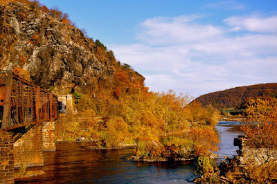 Today Ronnie and I headed back out to see the difference in today from yesterday. I tried out my ‘manual’ skills this weekend which was a lot of fun. This first pictures is of a waterfall which doesn’t exist unless we get lots of rain. It comes down off the mountain over the rocks, in between the bridges of West Virginia and Maryland….