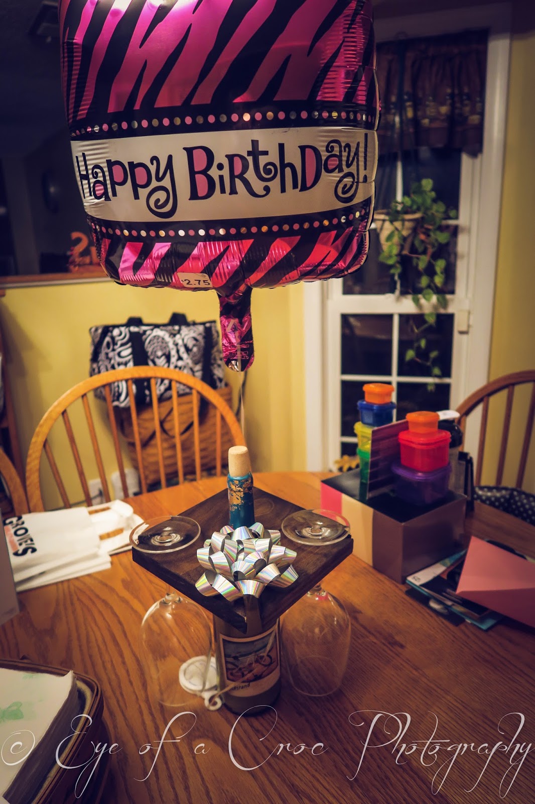 Wine glass holder and glasses with gift cert to one of my FAV places in OC – from Cierra (aka C) and Blake