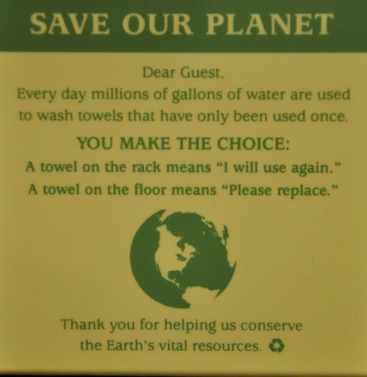 Not sure about you but I always use my towel more than once. My girls on the other hand, use a towel for their hair and one for their body each day without recycling. I can tell them over and over to REUSE but they just don’t see the need. Well….Marriott seems to be with me.