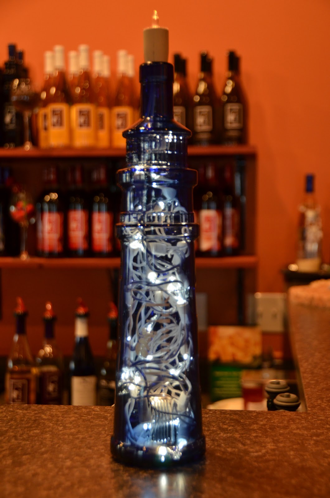 Looks like a perfect project for my DH….right?! It would look perfect in our Lighthouse bathroom and just think we wouldn’t need any lights, ha! And maybe we can come up with something ‘crafty’ to do with some of our other wine bottles. Any suggestions?