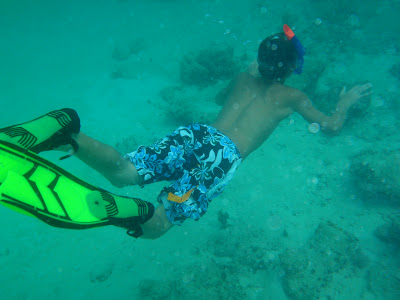 Maybe that’s because it was a lazy morning – J, Britt, Cierra and Chase slept in while we had our morning java enjoying the view. We had a late breakfast then headed off to Hawksnest. That was the first stop on the snorkel excursion we took two years ago and we remembered it to be a great one. Our memory served us right, it was absolutely beautiful. We saw lots of fish and Ronnie got to try out his new camera!