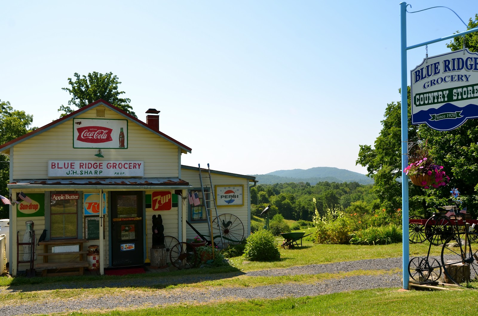 The place looked quaint so we turned around. The owner just happened to be pulling up to mail a letter so let us in. We chatted, looked around, purchased some preserves that his wife made and Ronnie grabbed a bottle of Mountain Dew!