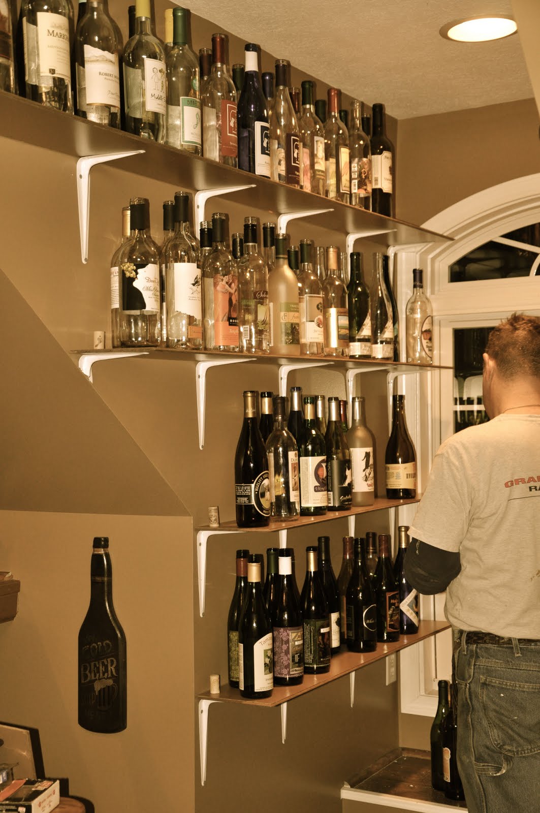 With just a little more than 2 weeks til our Holiday Party Ronnie is getting the bar organized and ready for the crowd! For the past few years we have been keeping the ’empty’ bottles that either have a story to them or we enjoyed. So while I worked today, he organized almost 90 bottles, wow – that’s a lot of stories and a LOT of good times, lol!