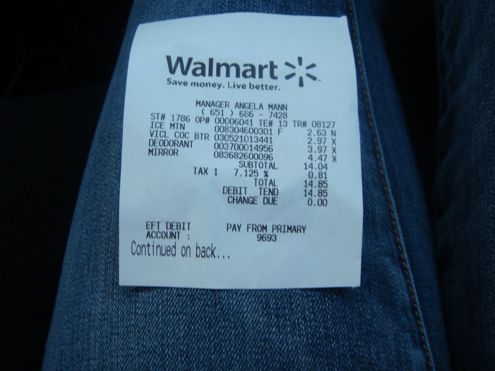 Check this out! While in Eagan, Minneapolis I (of course) had to stop by Walmart. I was so impressed to find that their receipts are double sided now.