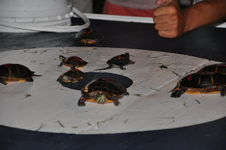 Next up the turtle race. Ronnie and I raced earlier in the week and mine won. Tonight neither he nor Cierra won but they had fun.