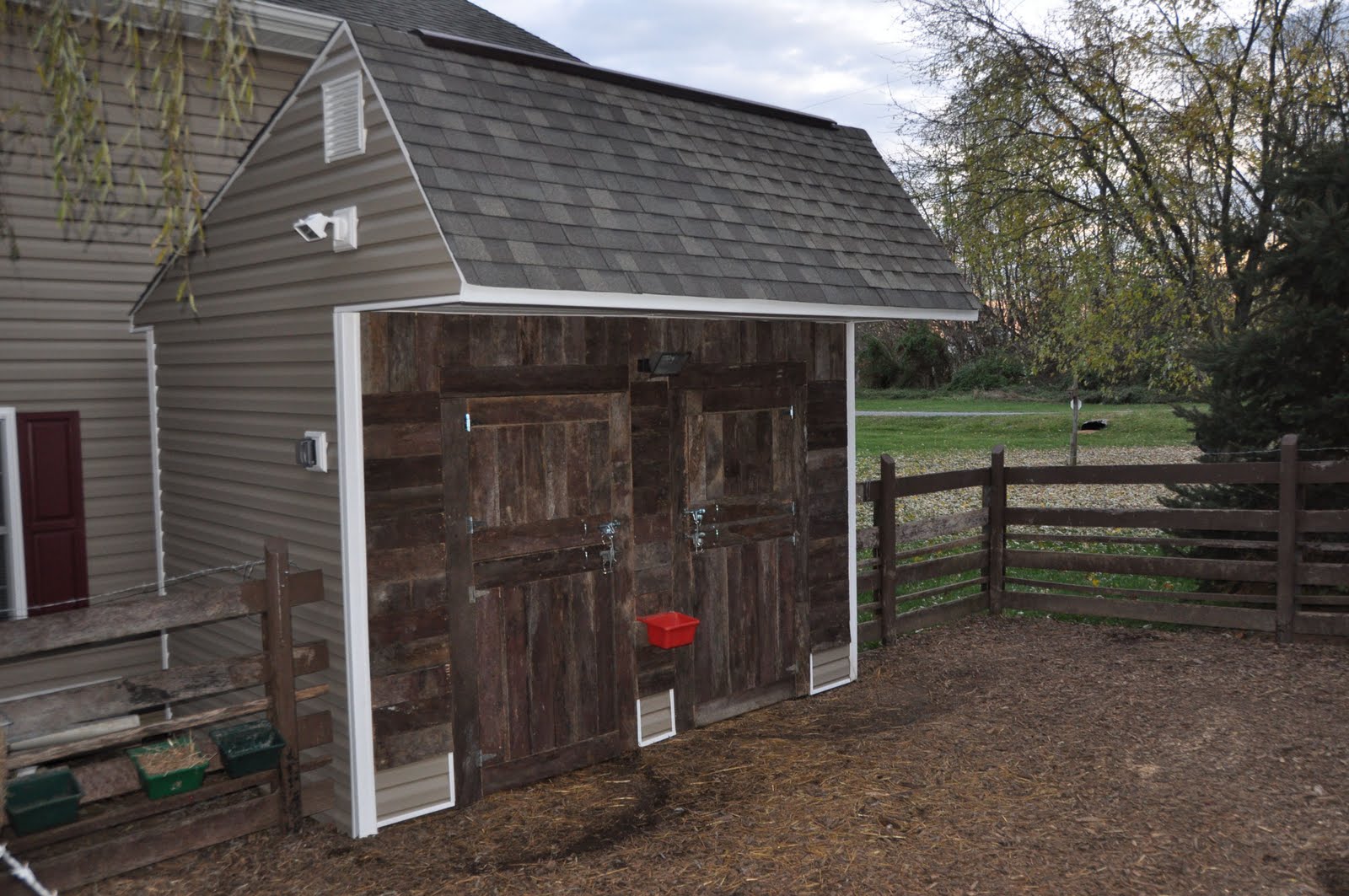 Yep, it took a few years but the barn is now complete and Cocoa and Puff are lovin’ it =) Of course, it’s just in time for winter and…..Reba to come home. She’s been gone for a few months and is just about ready to come back home a little bit bigger than when she left. And, if all goes as planned come February/March a lamb or two shall be born. Pretty exciting stuff, huh?!