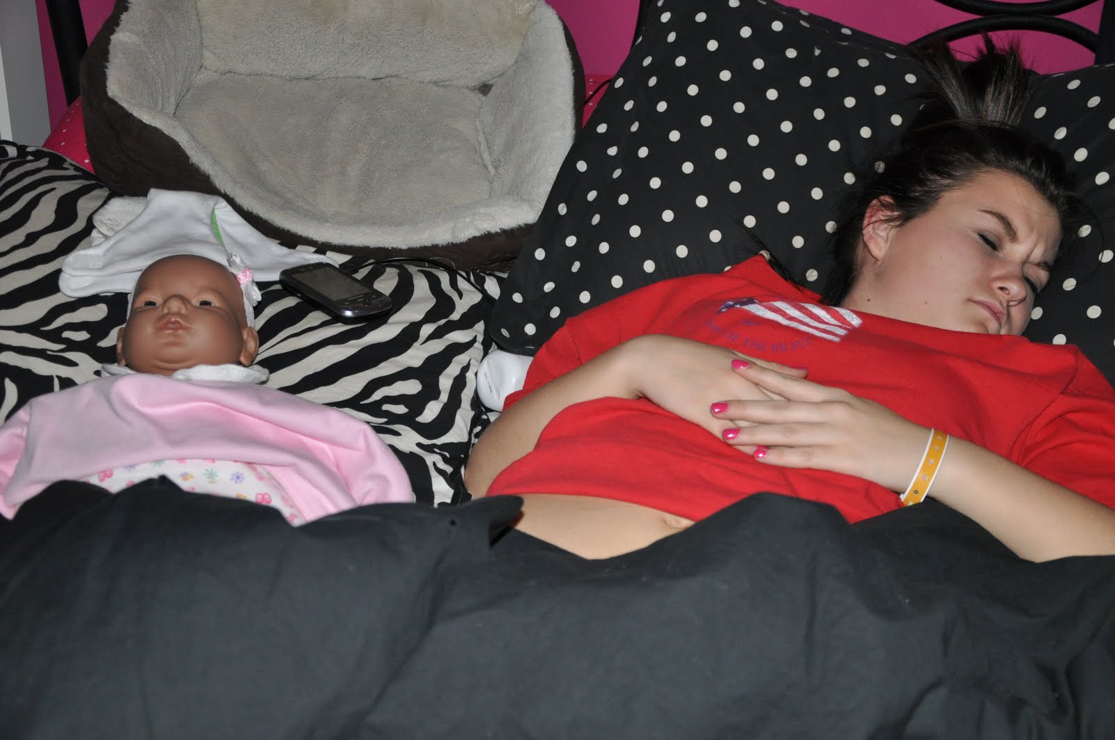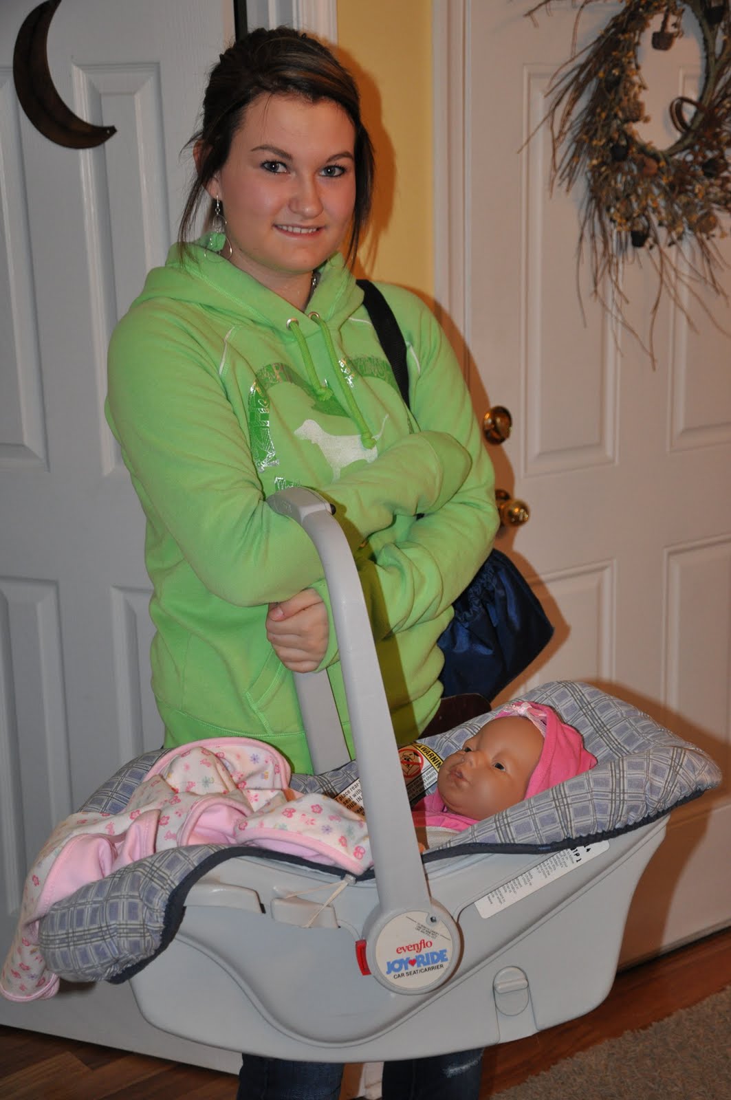 Cierra’s weekend “baby” as part of her Life Skills class. For those of you that aren’t familiar, this baby has a computer chip that is linked to a sensor that Cierra had to wear on her wrist all weekend. When the baby cried, she had to determine if she was hungry or needed her diaper changed while connecting with the sensor. She definitely took the job very serious, but was pretty tired by the end of the weekend. Neither Friday or Saturday nights did she get much sleep….