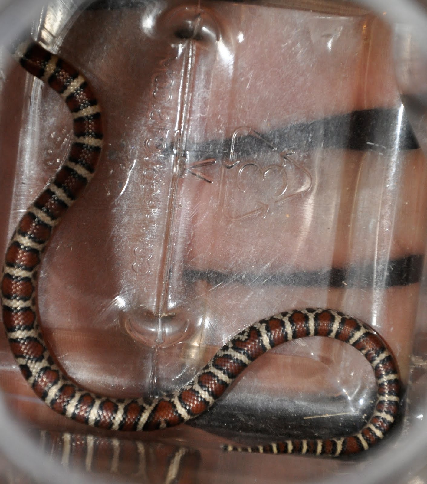 We aren’t quite sure if it’s a baby corn snake or exactly what type it is. Regardless, it’s not staying here, ha!