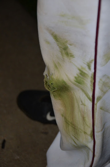 So now all the uniforms get washed and turned back in until next year. One pair of pants bit the dust – many games were played in these white pants which were washed, pre-treated, repeat, repeat, lol….
