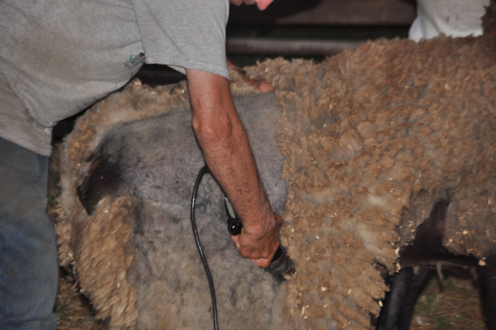 And we just continue to learn…..once sheep get to be a year old, their wool stays together (see above =) when they get sheared. Opie’s on the other hand (since he’s only 4 months old) just cuts into pieces. Hmmm..