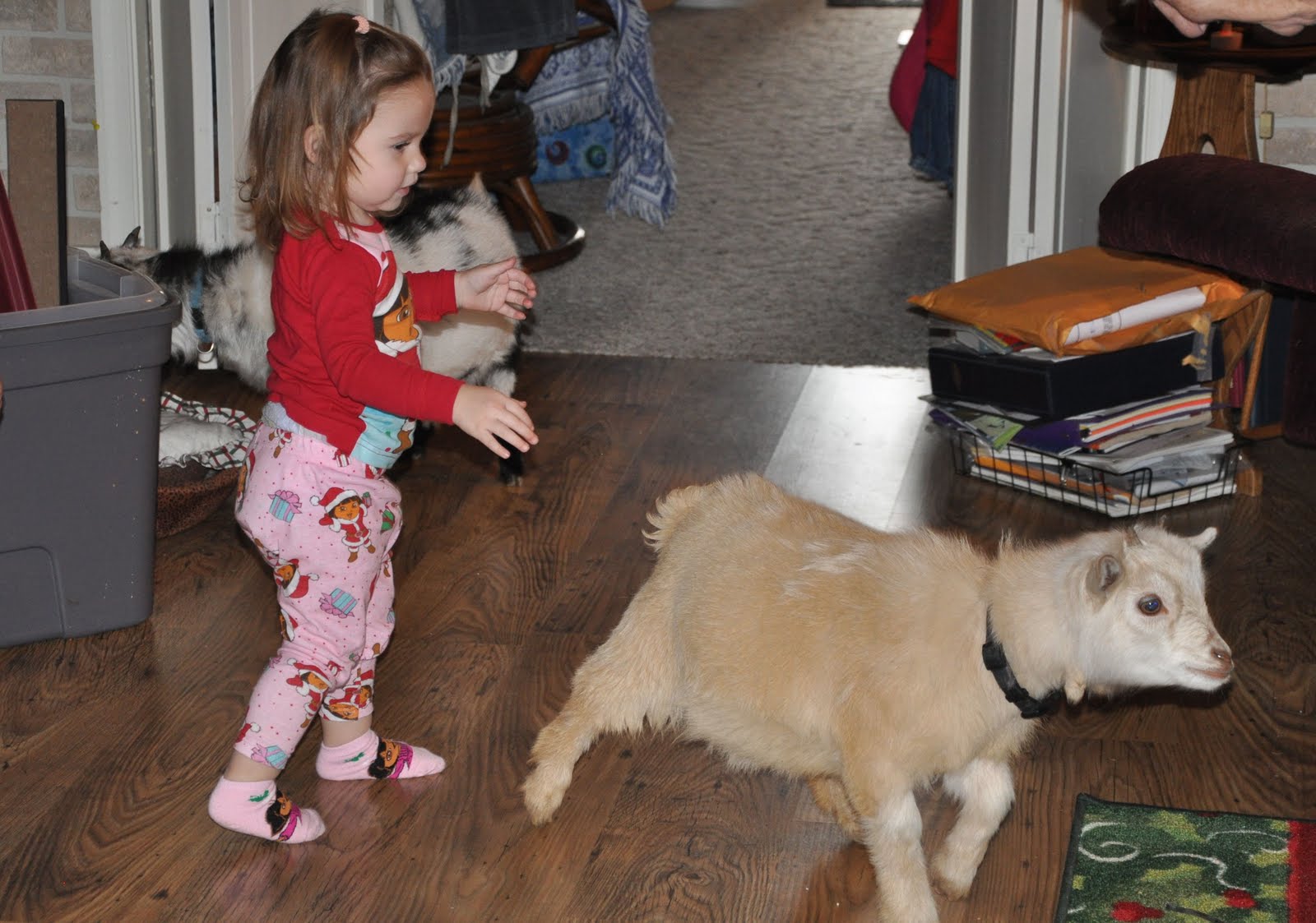 and even a baby goat – Yes a goat in the house, lol!